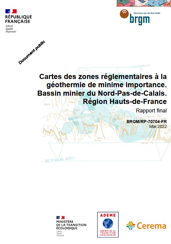 Ce rapport publié en 2022 présente les résultats de l'étude réalisée par le BRGM et le Cerema à la demande de la Direction Générale de la Prévention des Risques du ministère (DGPR) avec pour objectif d'actualiser les données du bassin minier du Nord-Pas-de-Calais dans la carte nationale des zones réglementaires de la géothermie de minime importance.